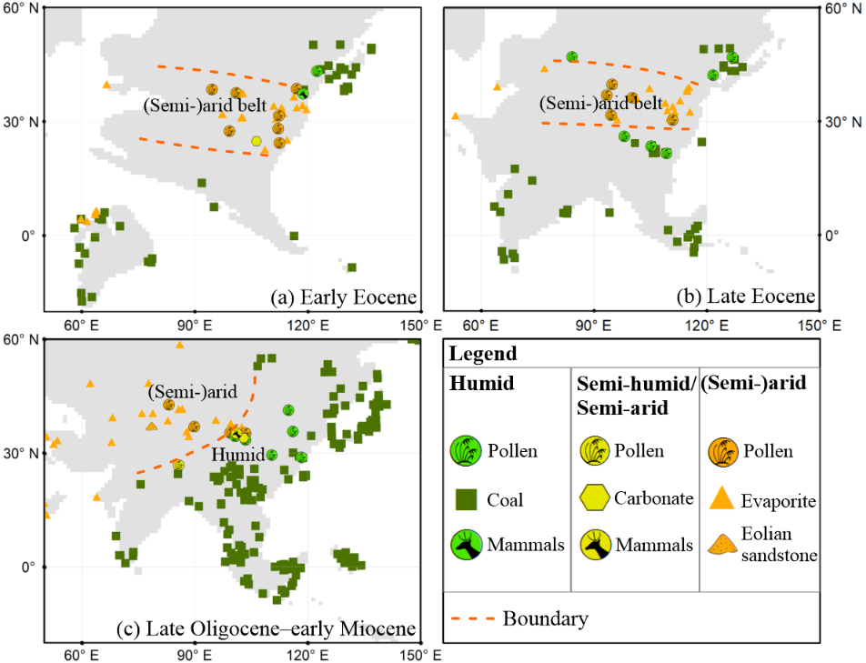 现代东亚地区呈现东部湿润、西部干旱的环境格局,主要受到季风-干旱气候系统的控制。作为全球季风系统的重要组成部分,东亚季风承担着从热带向中高纬度输送能量与水汽的重要作用,影响着区域内十多亿人口的生产与生活。东亚季风具有区别于其他季风系统的独特性:一是它能够穿透副热带高压带,为本应干旱的副热带地区带来丰沛降水;二是其影响范围可达40°N以北,远超热带辐合带的摆动范围。现代东亚季风建立(即东亚副热带地区由干旱变成湿润环境,形成东湿西干的季风主导气候格局)的时间及其原因与机制是重要的科学问题。这一研究既...