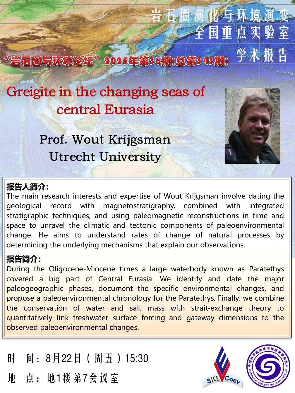 【8.22】岩石圈与环境论坛:Prof. Wout Krijgsman