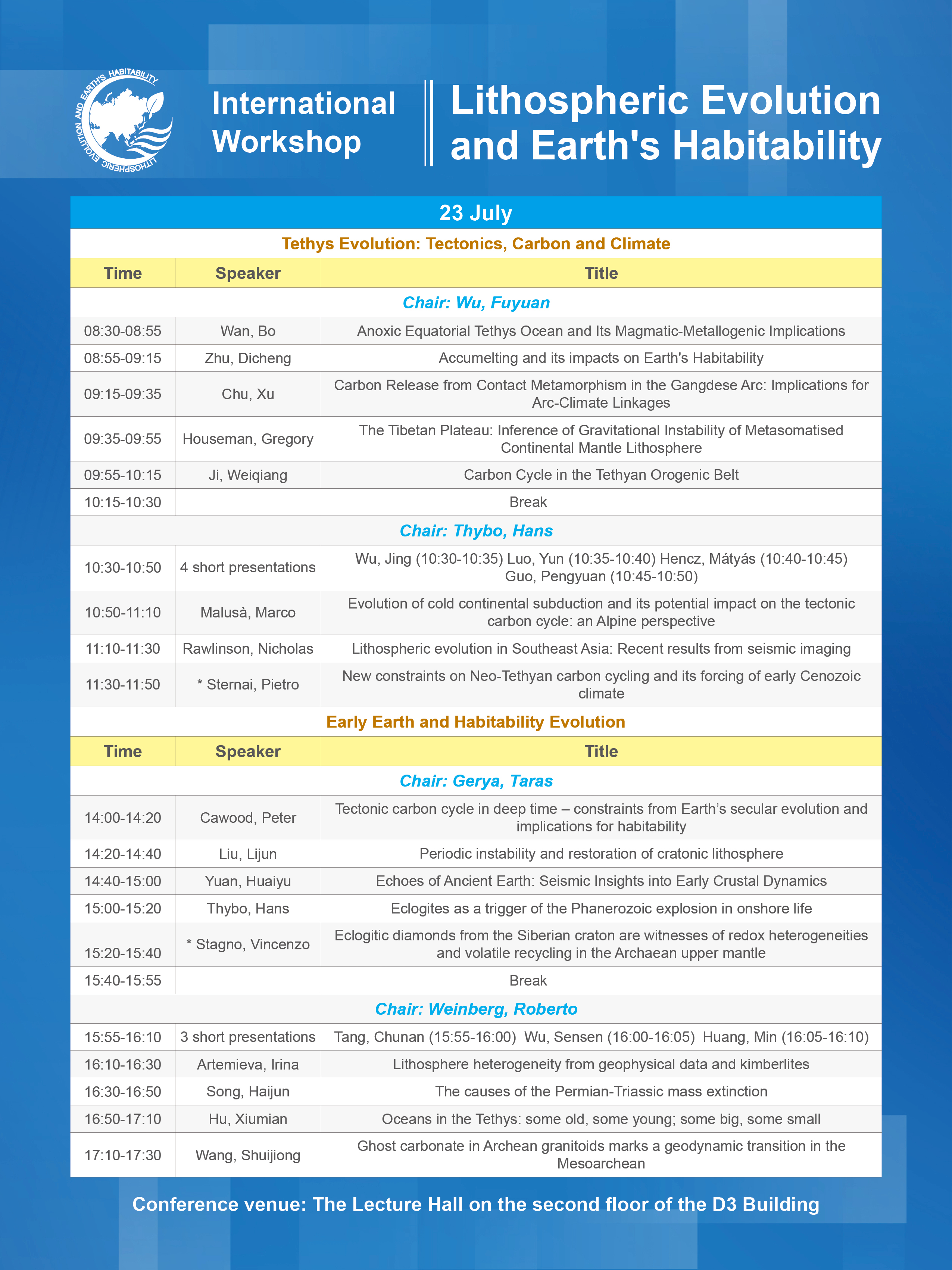 【7.22-23】International Workshop: Lithospheric Evolution and Earth's Habitability