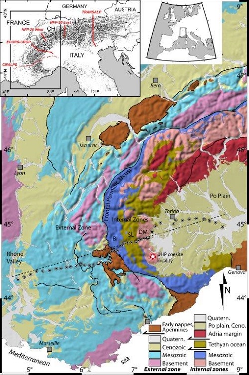 阿尔卑斯是现代地质学的摇篮,地球科学的许多经典概念和理论都诞生于该地区。1984年法国科学家Chopin首次在西阿尔卑斯地表发现超高压矿物柯石英,基于该矿物的超高压变质特性,提出大陆下地壳俯冲到100公里以下深度并折返到地表的假说,进而发展了大陆深俯冲理论。然而,大陆地壳的密度明显小于地幔物质,传统观念一直认为“轻的大陆物质不能够俯冲到地幔深度”。因此,近30年来,欧洲科学家在阿尔卑斯地区开展了多次地震学探测,试图从深部地质结构中寻找大陆深俯冲的直接证据。由于阿尔卑斯造山带壳幔速度结构的复杂性及方法的局限性,无论是人工源方法还是被动源方法都未能获得令人信服的直接证据,关于大陆究竟能否发生深俯冲依然存在激烈的争论。