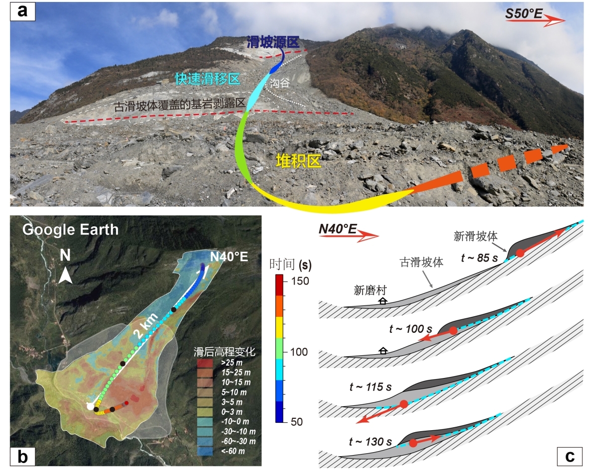 滑坡作为山区最危险的地质灾害之一,严重威胁着人类的生命财产安全。基于现代高精度对地观测技术,通过对比分析滑坡前后的地形、地物变化特征,即可很好地重建滑坡的滑移距离、体积等基本参数。然而,灾害性大滑坡具有速度快、规模大、机制复杂等特征,传统方法难以对滑坡的动态过程进行实时观测,从而阻碍了对滑坡致灾过程的认识。滑坡体的加速减速、碰撞破碎等过程,会激发相应的地震波信号,可以为滑坡的动态过程研究提供了宝贵的信息来源。