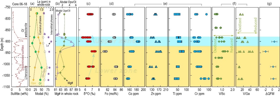 (2)揭示内部环带发育的斜方辉石大量结晶与地壳硅加入密不可分,进一步表明硅-碳等组分加入到玄武质岩浆是造山带铜镍矿床形成的重要过程。