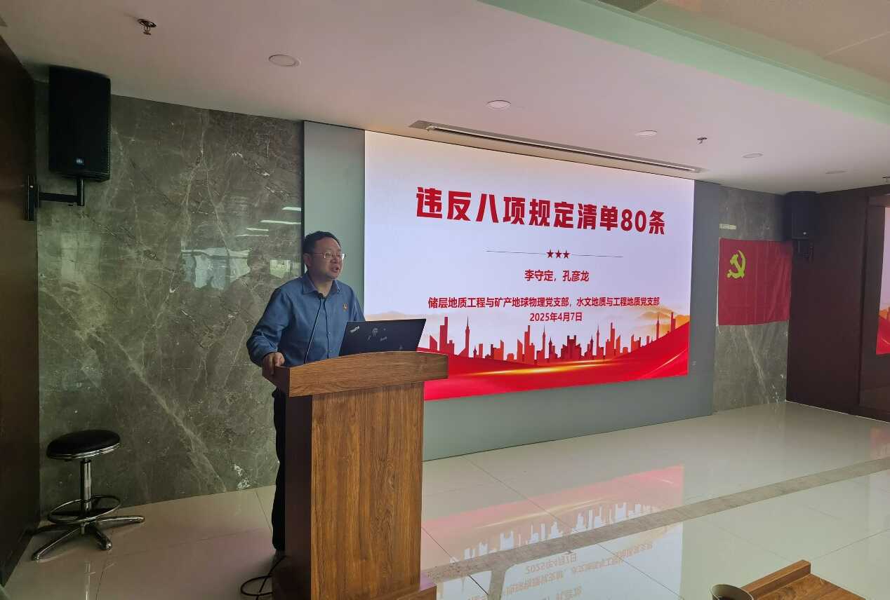 储层矿产支部书记李守定围绕“八项规定清单80条”作专题报告,逐项解析经费管理、公务接待等领域的红线要求,强调党员干部要坚决反对特权思想和特权现象,树牢正确权力观、政绩观和事业观。水工支部副书记李志清以学习“党性、党风、党纪”为主题做报告,强调党性是根本、党风是表现、党纪是保障,必须坚持党性党风党纪一起抓,通过加强理论武装、作风建设与纪律监督,构建常态化长效机制,以系统思维推进全面从严治党,确保党始终成为中国特色社会主义事业的坚强领导核心。