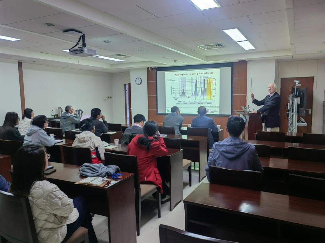 在第二场题为 “Climate change, the Norse and Inuit in Greenland from Medieval time to the Little Ice Age”(中世纪至小冰期格陵兰气候变化与诺斯人和因纽特人)的报告中,Bradley教授从古气候学的独特视角,结合考古资料和历史记录,解析了定居于格陵兰的诺斯和因纽特两大族群对气候变化的差异性适应方式。该案例为理解现今全球变暖背景下人类社会如何应对气候危机、如何实现可持续发展提供了宝贵的历史参照。