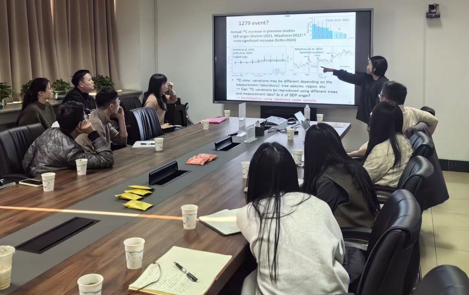 Miyake教授首先介绍了研究背景和动机。太阳爆发(如太阳耀斑、日冕物质抛射)会释放大量高能粒子,可能对现代社会的卫星、通信、电网等造成严重破坏。了解历史上极端太阳事件的频率和强度,有助于评估其灾害风险。