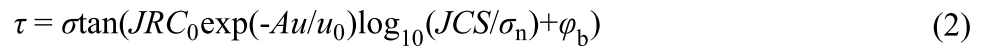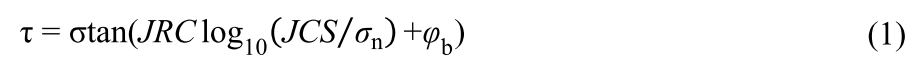 式中,τ表示最大剪切强度,σn表示有效正应力,JCS表示岩壁抗压强度,JRC表示结构面粗糙度系数,φb表示基本摩擦角。