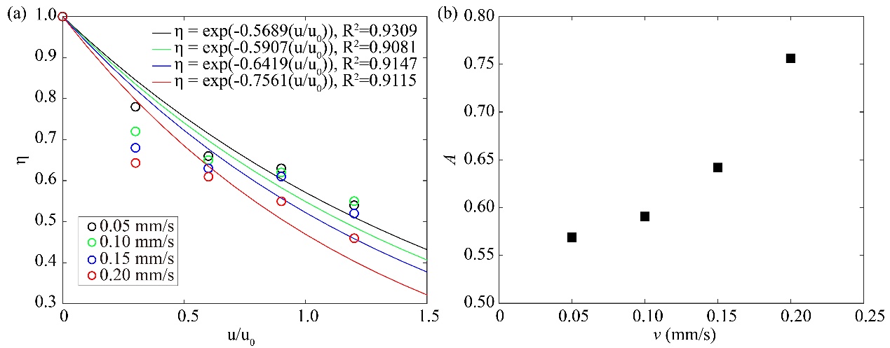 同时,研究团队基于自主研发的岩体动态性能测试系统,开展大量实验定量刻画了花岗岩结构面在不同剪切速率下的随位移累积的形貌退化程度,揭示了形貌退化系数随剪切速率增大而增大的规律(图2,图3)。