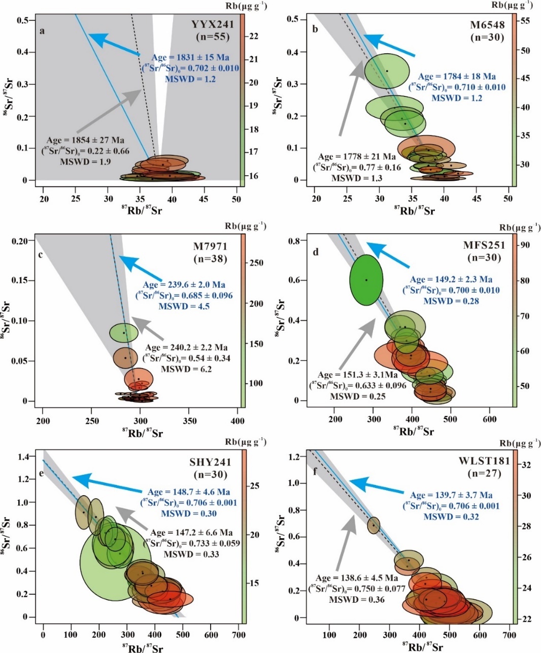 (3)开发新工具:推出专门针对原位数据集的数据处理方案(DRS),并在Iolite软件中开发相应的可视化Rb-Sr年龄插件(图6);