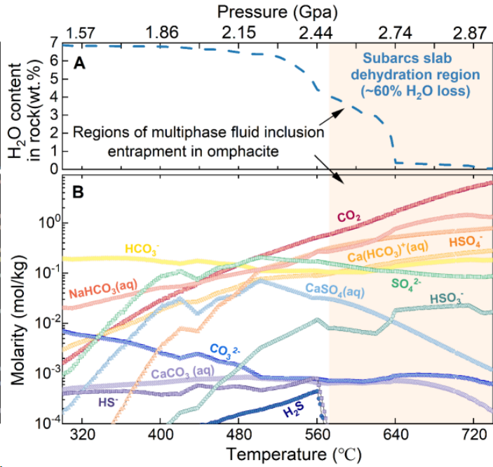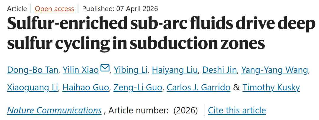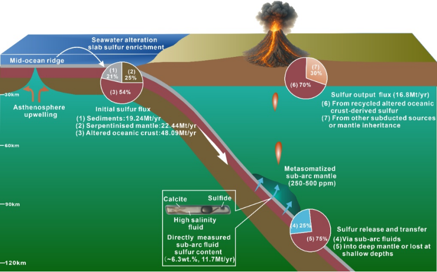 硫是地球系统中关键的挥发性元素之一,在火山活动、金属矿产形成以及全球气候演变等过程中发挥着重要作用。板块俯冲作为连接地表与地球深部的核心物质循环通道,是驱动硫在不同圈层之间迁移与再分配的关键地质过程。然而,俯冲洋壳在深部释放的流体究竟能够携带多少硫进入地幔楔,并最终参与弧火山喷发,长期以来缺乏直接观测证据,成为制约俯冲带硫循环乃至全球硫循环研究的核心科学问题。近日,中国科学技术大学地球和空间科学学院肖益林教授团队在这一问题上取得重要进展。相关成果以“Sulfur-enriched sub-arc fluids drive deep sulfur cycling in subduction zones”为题,发表在国际学术期刊Nature Communications上。