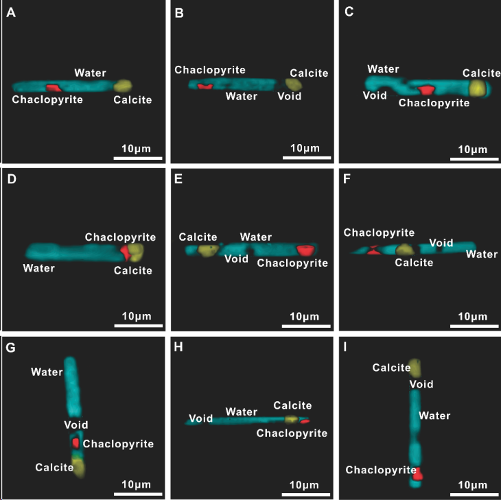 图1 西藏松多榴辉岩绿辉石中多相流体包裹体的拉曼三维成像