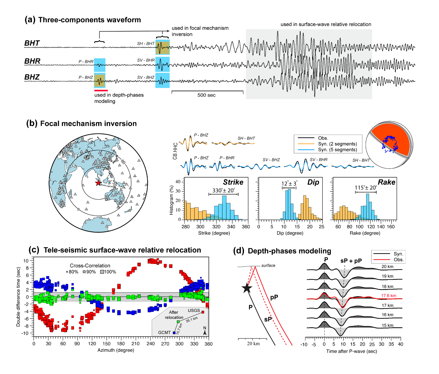 俯冲带大型逆冲断层(megathrust),即俯冲的大洋板片与上覆板片之间的边界,孕育了全球大多数8级以上的大地震。断层三维几何形态和摩擦等物理特性,控制着大地震破裂的起始、演化和终止,进而影响地震大小及其造成的地震和相关次生灾害(例如海啸)。因此,精细约束俯冲带大型逆冲断层的几何和摩擦状态,对理解大地震震源物理及防震减灾至关重要。近年来,随着地震观测台网密度的增加和分析手段的不断进步,地震的精定位和震源机制解已成为理解断层几何和摩擦状态的重要手段。尽管在少部分陆地区域密集台阵地震精定位方法已取得广泛的...