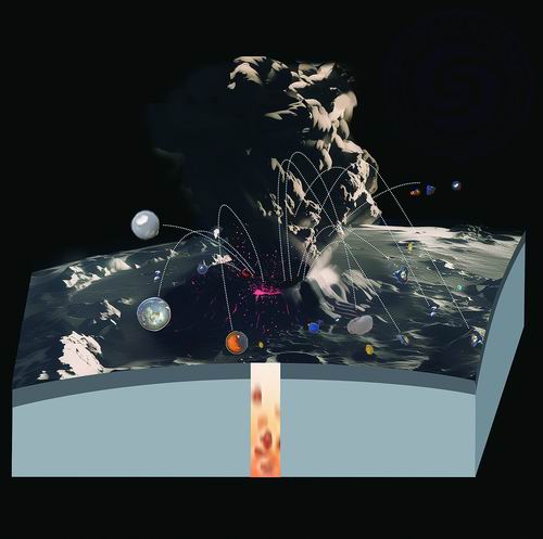月球喷发形成火山玻璃示意图。地质地球所供图