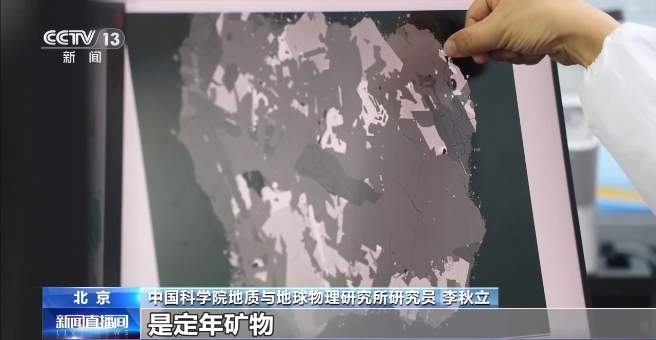 中国科学院地质与地球物理研究所研究员 李秋立:我们要在里边首先找到记录时间的小矿物,找出来之后变成离子激发出来,它这里边哪是定年矿物呢?要把它放到最小的这一颗白点,是定年矿物。