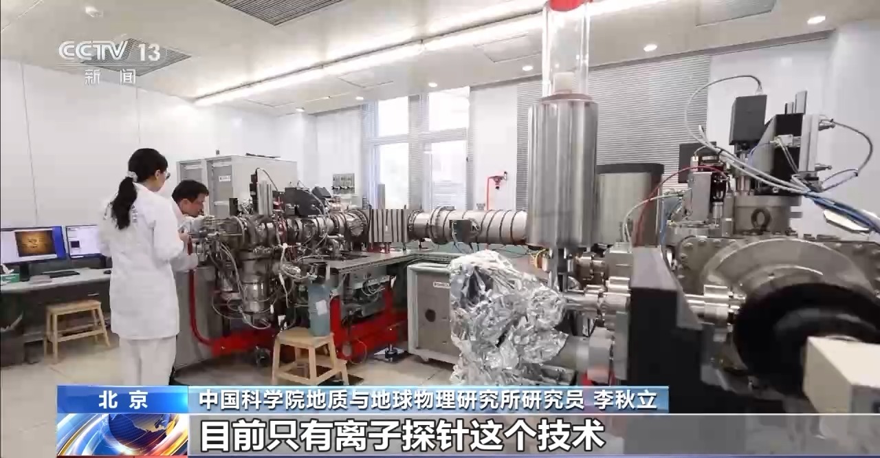中国科学院地质与地球物理研究所研究员 李秋立:在这个800×800微米里边找个2×2微米的一个小颗粒,在这么小的范围可以激发它的,目前只有离子探针技术,我们进行了长期训练,可以把它做到更小的范围内测得更准的数据。