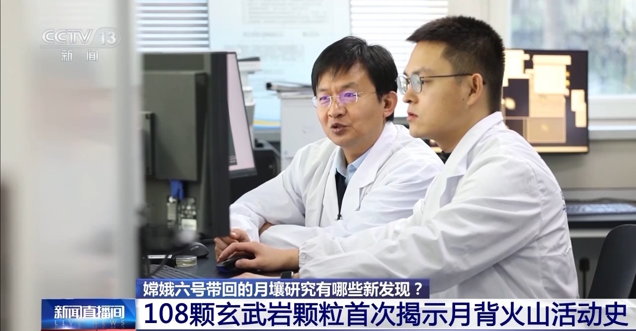 中国科学院地质与地球物理研究所研究员 李秋立:108颗岩屑颗粒发现绝大部分都是28亿年的,其中有一颗42亿年的玄武岩岩屑非常特殊,目前是嫦娥六号返回样品里最老的玄武岩,所以月球背面的岩浆活动,持续了至少14亿年,月幔的深部的性质在这段时间发生了比较大的变化,是我们通过这份样品首次揭示出来的。