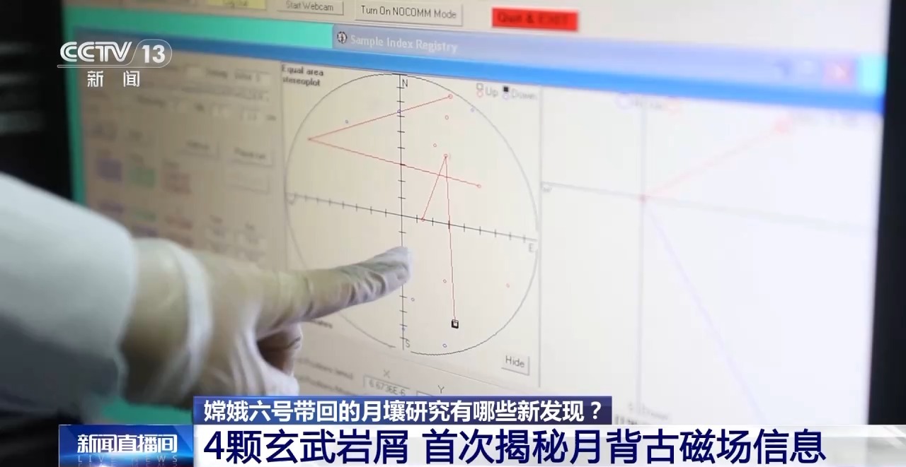 中国科学院地质与地球物理研究所副研究员 蔡书慧:我们挑出来的4颗毫米级的玄武岩岩屑的研究,发现月球在距今28亿年的时候具有一个磁场,而且它的磁场有增强的趋势。