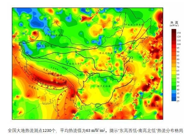 中国大陆地区大地热流分布图(2019)