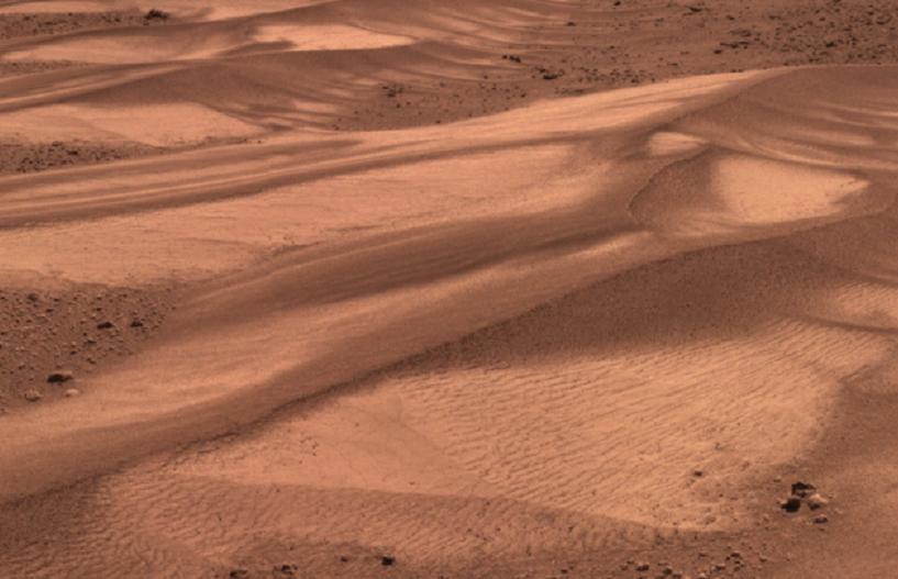 例如,火星上的沙丘为什么有明暗之分?他们发现暗沙丘是覆盖在亮沙丘上形成的。这说明原来的亮沙丘无法活动了。那么,亮沙丘为什么会“死亡”?他们分析这正是亮沙丘表层的液态盐水干燥结壳后导致沙粒无法移动。当风沙再来的时候,亮沙丘被覆盖,形成的暗沙丘,新的暗沙层在又一次含盐液态水作用下形成团粒化结构。