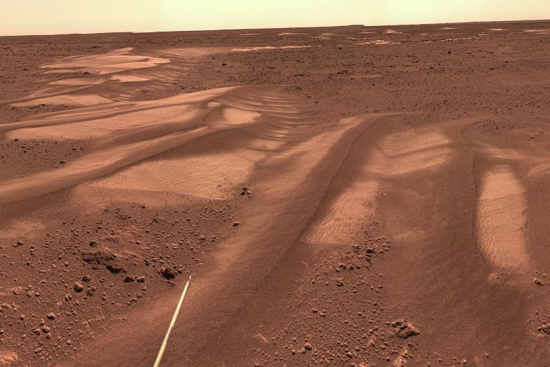 祝融号拍摄的火星上的亮沙与暗沙。 图片来自:地质地球所