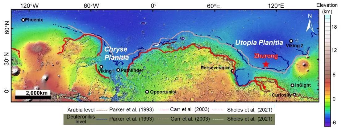 那么,气温最高的火星低纬度地区是否存在液态水呢?着陆点距火星“赤道”更近的祝融号为回答这个问题提供了契机。
