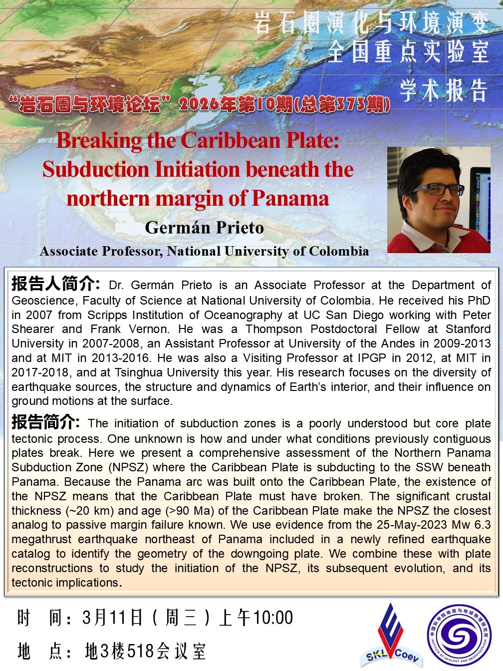 【3.9】岩石圈与环境论坛:William Lukens 副教授