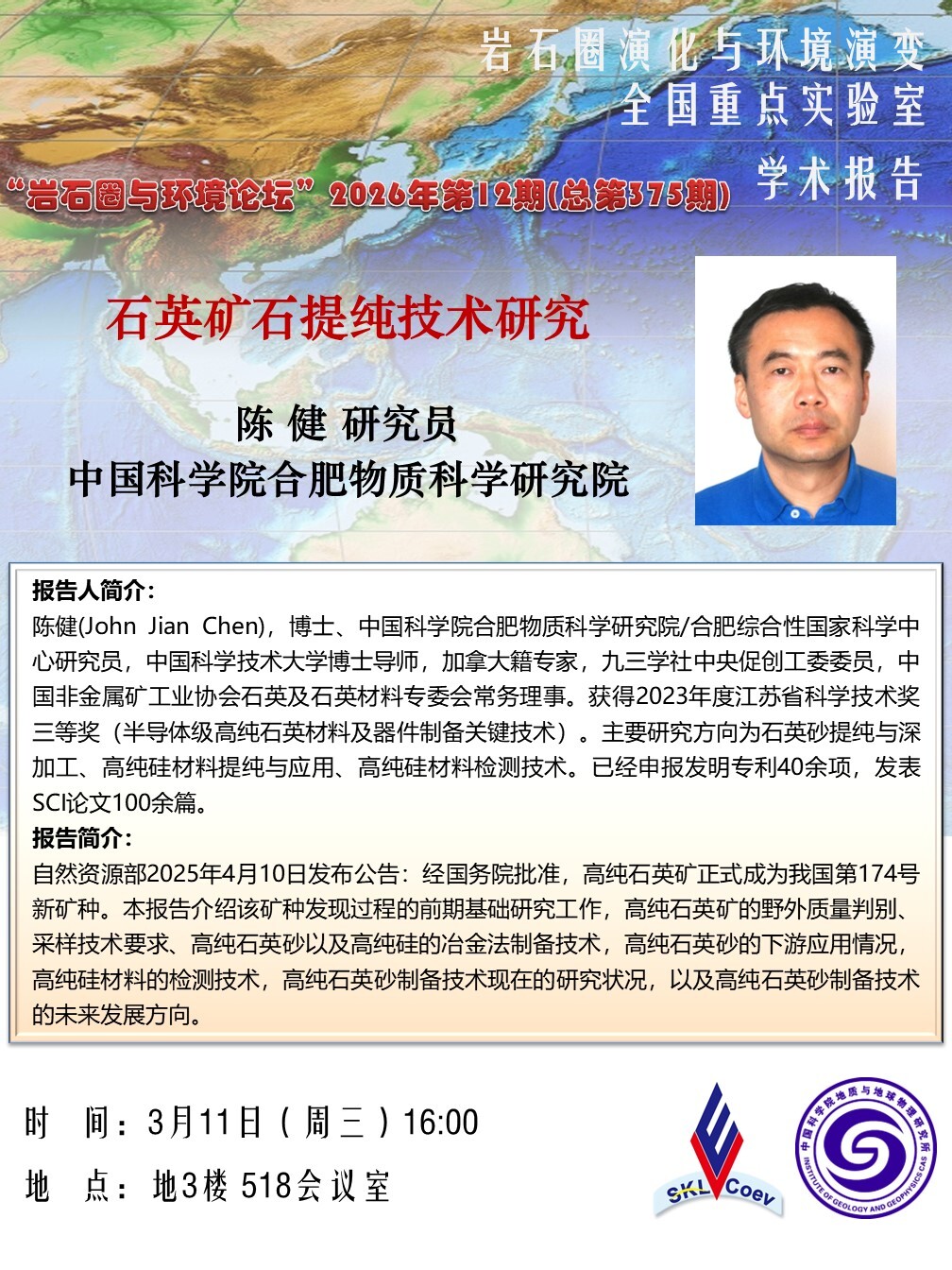 【3.11】岩石圈与环境论坛:陈 健 研究员