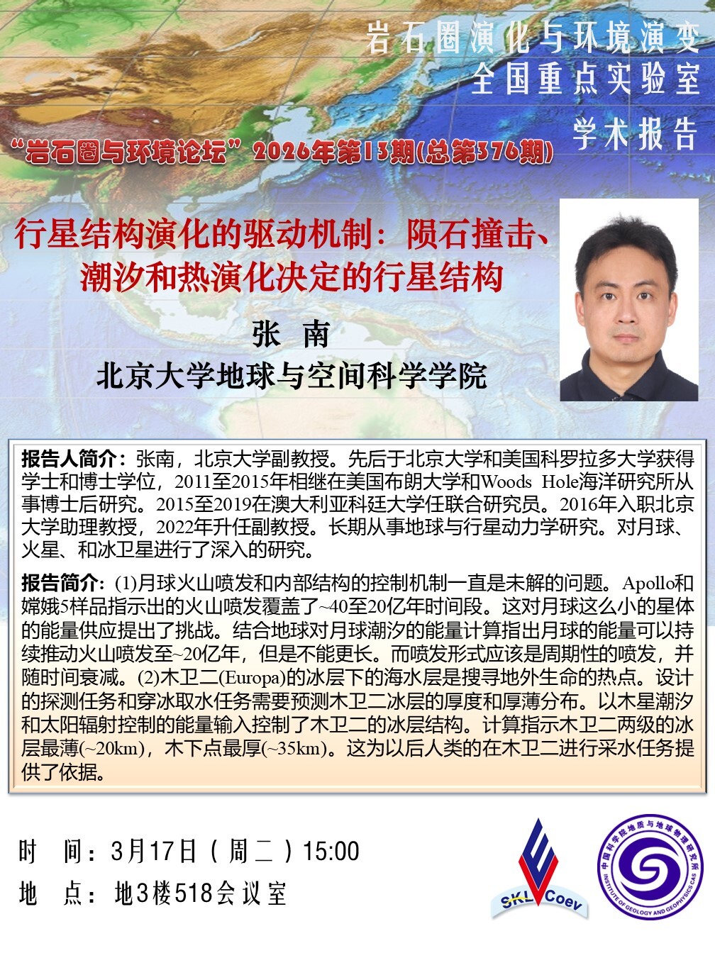 【3.17】岩石圈与环境论坛:张 南 副教授