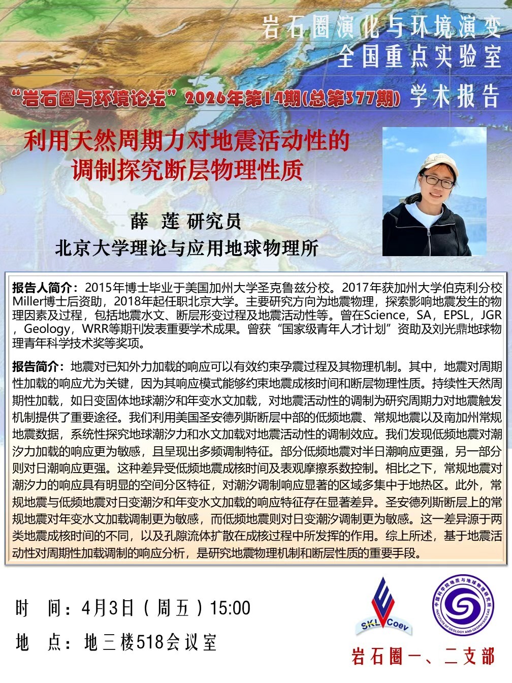 【4.3】岩石圈与环境论坛:薛 莲 研究员