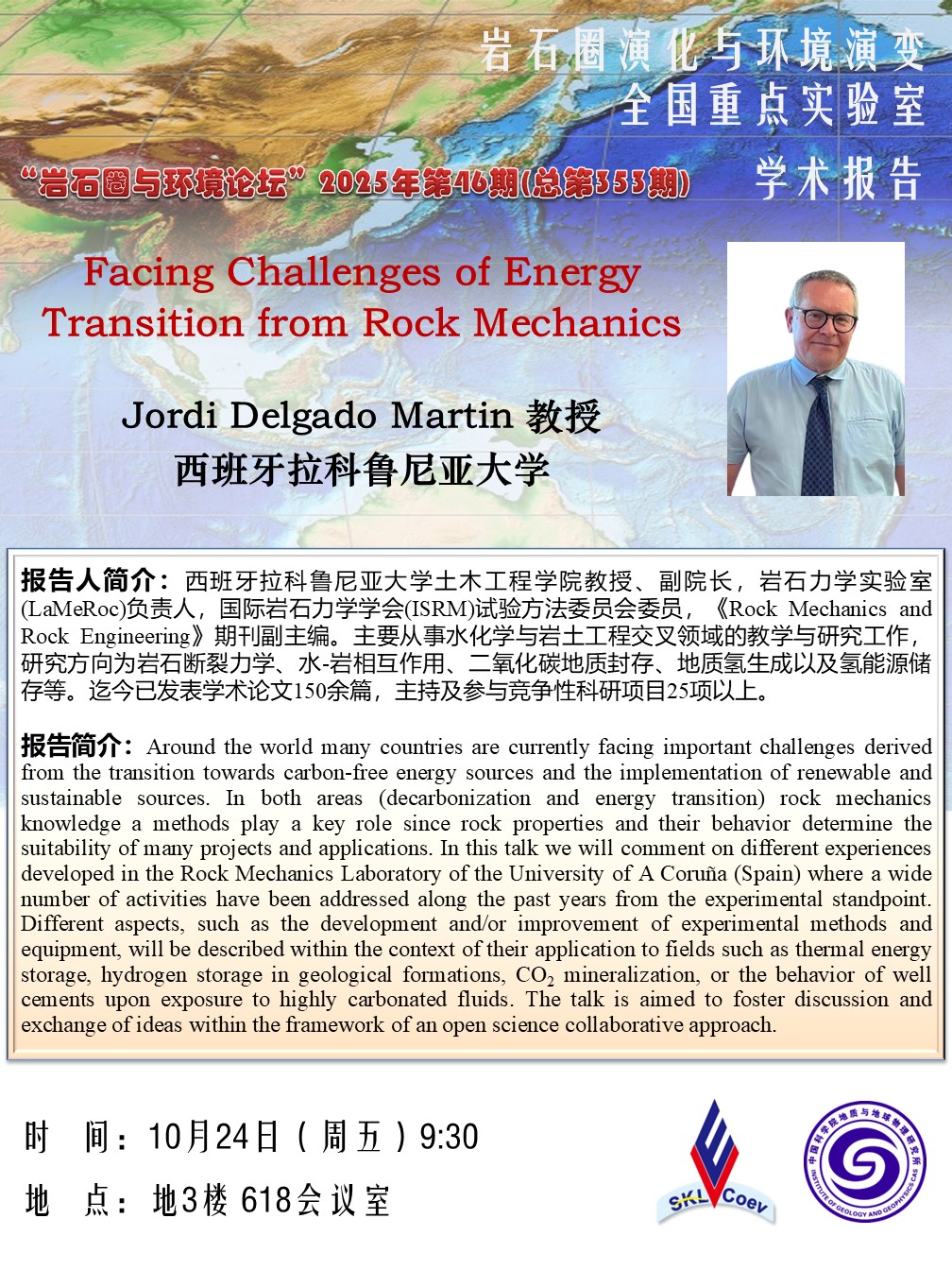 【10.24】岩石圈与环境论坛:Jordi Delgado Martin 教授