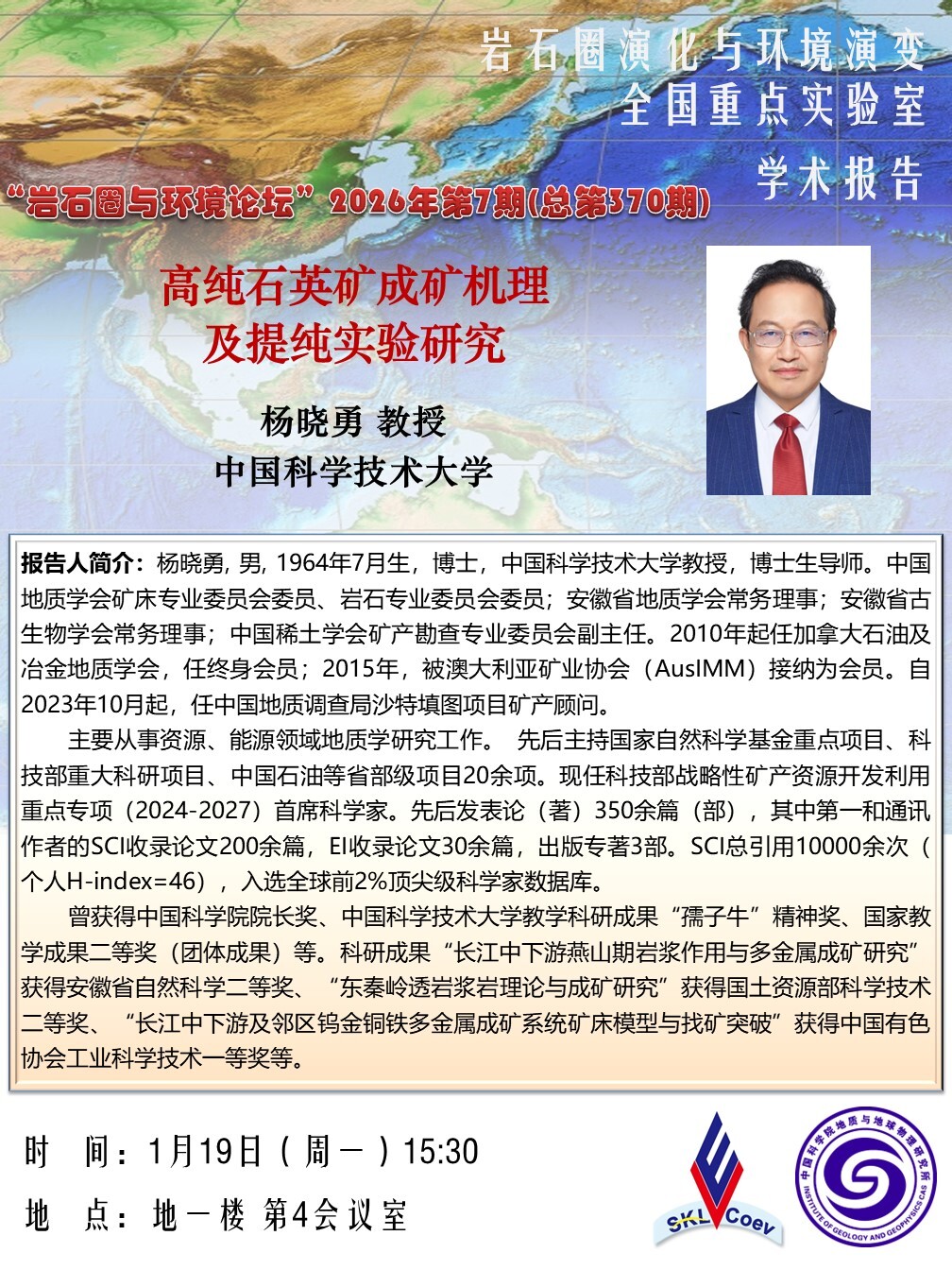 【1.19】岩石圈与环境论坛:杨晓勇 教授