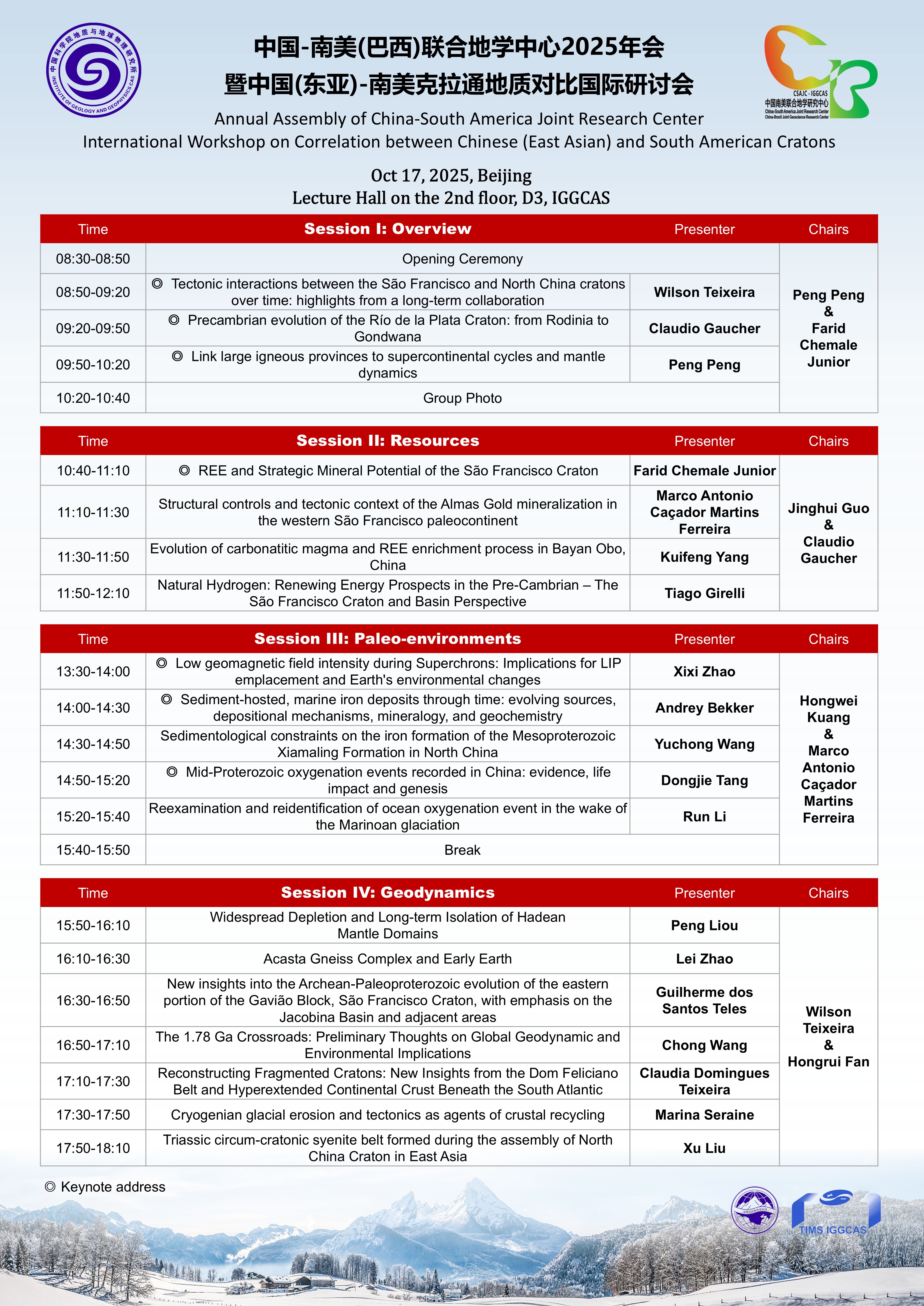 【10.17】中国-南美(巴西)联合地学中心2025年会暨中国(东亚)-南美克拉通地质对比国际研讨会