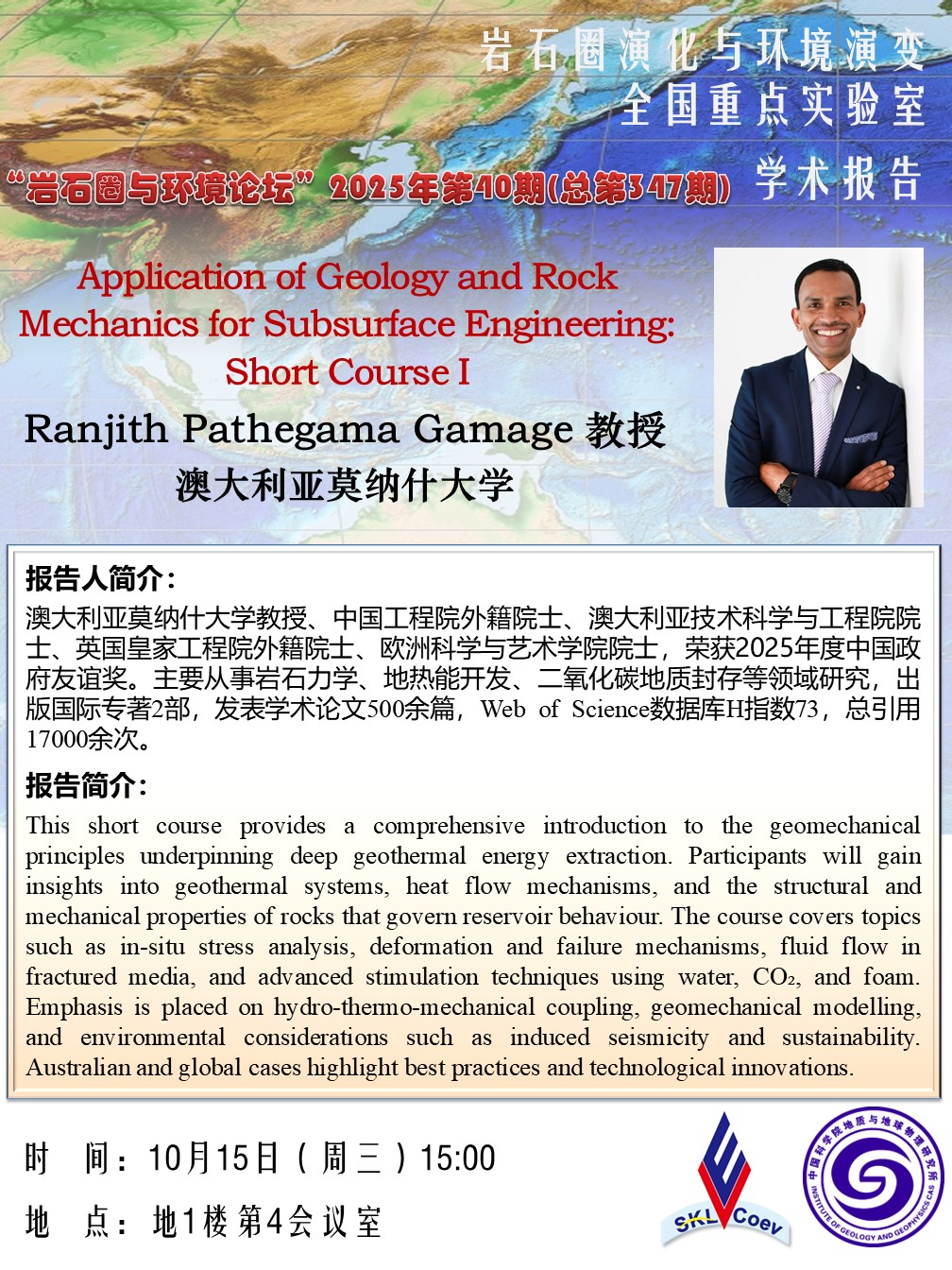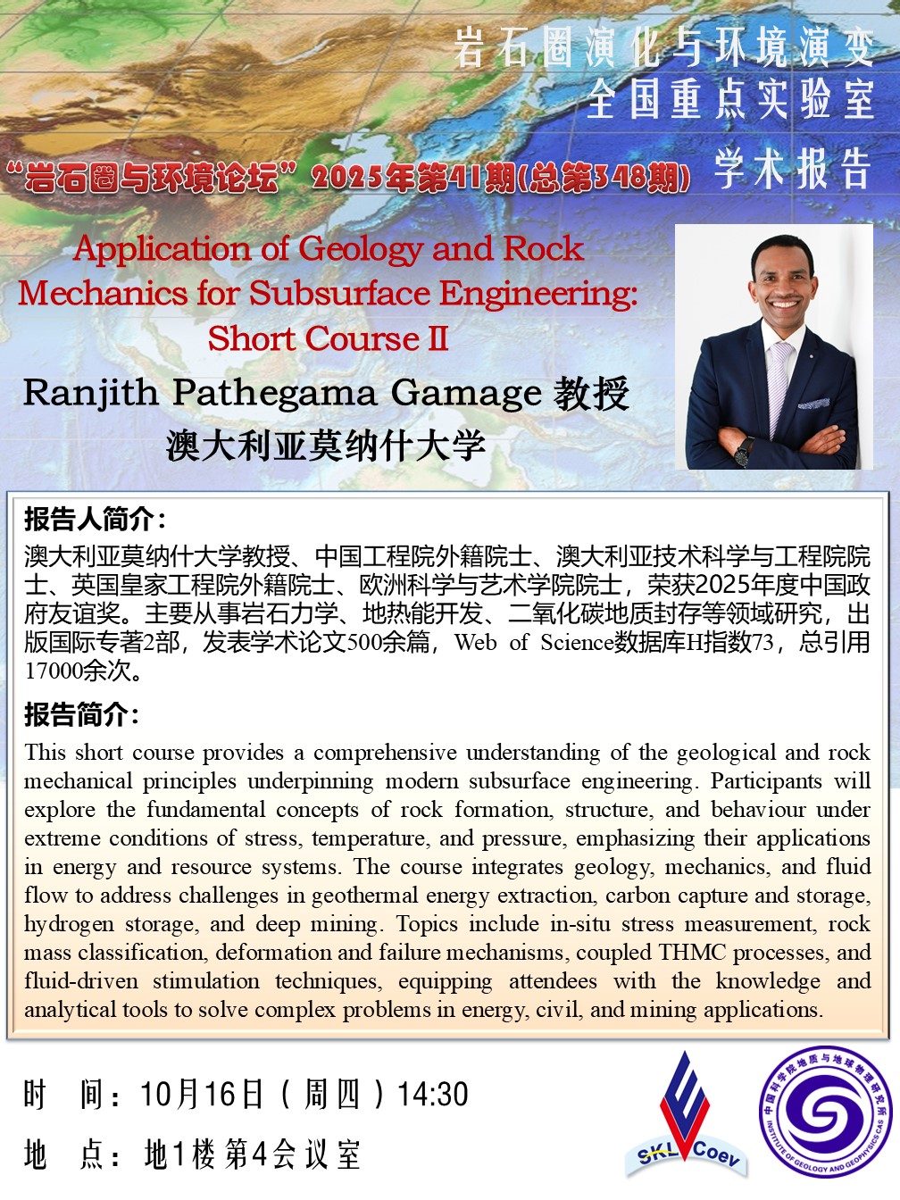 【10.16】岩石圈与环境论坛:Ranjith Pathegama Gamage教授