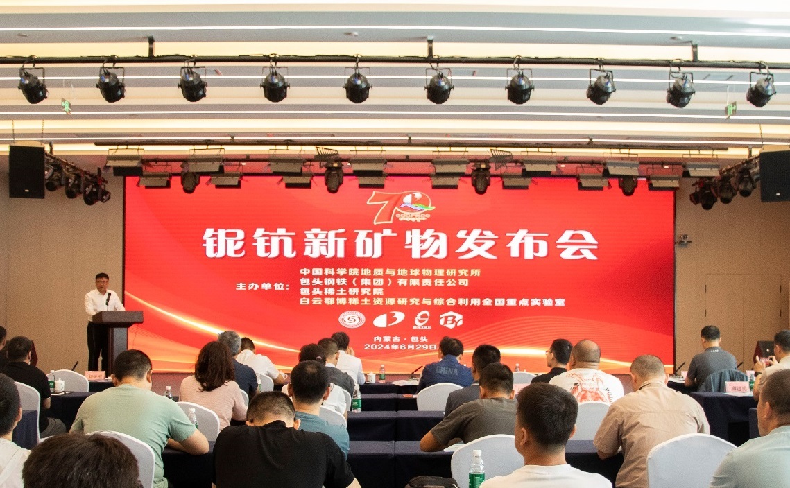 我所与包钢(集团)公司、包头稀土研究院、中南大学等单位合作,在白云鄂博稀土矿床发现两种战略性关键金属新矿物,并分别于2024年5月3日和6月3日获得国际矿物协会新矿物命名与分类专业委员会的正式批准,命名为鄂博铌矿(Oboniobite)、翟钪闪石(Scandio-fluoro-eckermannite)。6月29日上午,铌钪新矿物新闻发布会在包头市隆重举办,公布了这项最新研究。李献华院士代表研究所发布成果,范宏瑞研究员对新矿物研究成果进行了详细介绍。新华社等多家媒体对这一成果进行了广泛报道。