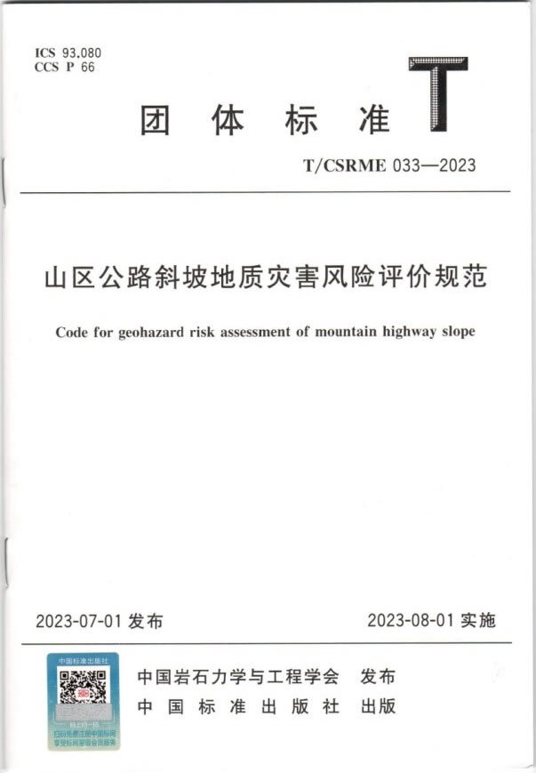 近日,我国首部专门针对山区公路斜坡地质灾害风险评价的规范——《山区公路斜坡地质灾害风险评价规范》T/CSRME 033—2023(以下简称规范)正式出版发行。该规范由我所祁生文、邹宇、王学良等为主要起草人,历时3年时间编撰而成。