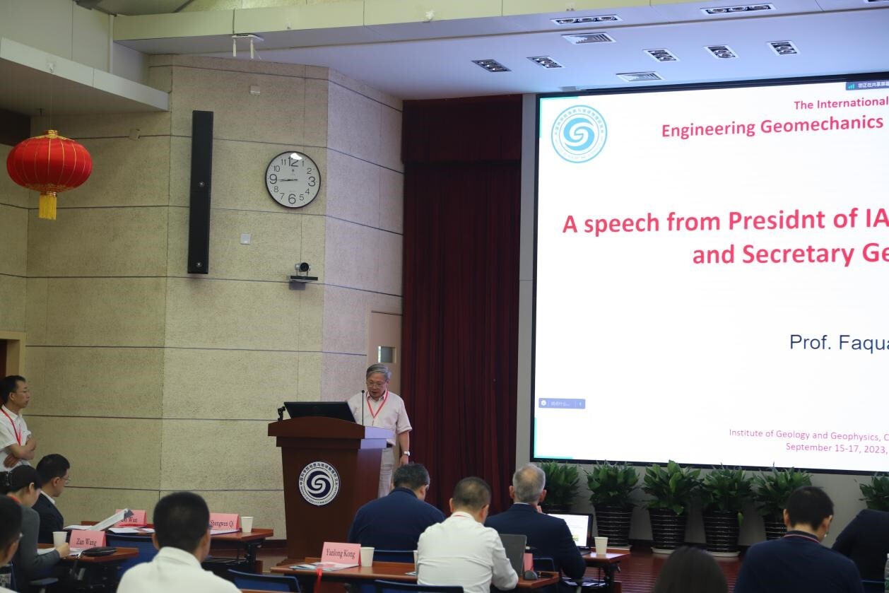 会议学术委员会主席由我所所长底青云院士和国际工程地质与环境协会(IAEG)主席Vassilis Marinos共同担任,组织委员会主席由我所副所长赵亮研究员和页岩气与地质工程院重点实验室主任祁生文研究员(兼秘书长)共同担任。美国工程院Micheal Celia院士、IAEG主席Vassilis Marinos、IAEG秘书长、IAEG中国委员会主席伍法权教授、IAEG副主席Ranjan Kumar Dahal、香港大学岳中琦教授和青年科学家报告人现场参会,美国工程院Derek Elsworth院士线上参会。