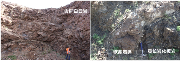 白云鄂博矿床含矿白云岩(左)和碳酸岩脉(右)