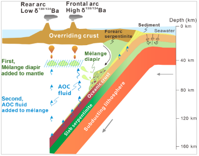 板块俯冲带是连接地球表层与内部的关键纽带,也是地球内外物质循环的核心地带。俯冲带广泛发育弧火山作用,所形成的岩浆岩普遍富集钡等不相容元素,一般认为与俯冲板片物质的加入相关。然而,国际学术界对弧岩浆形成的两大核心问题,即板片物质的具体组分以及它们如何运移到弧下地幔,存在巨大争议。